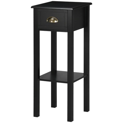 HOMCOM 2-Tier Side Table With Drawer, Narrow End Table With Bottom Shelf, For Living Room Or Bedroom, Black