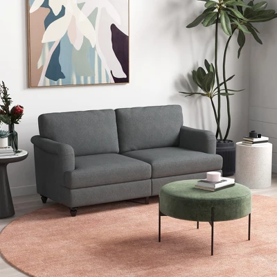 HOMCOM 3-Seater Sofa Couch, 71″ Modern Linen Fabric Sofa With Rubber Wood Legs And Slatted Frame For Living Room, Bedroom And Apartment, Dark Gray