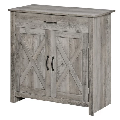 HOMCOM 32″ Farmhouse Barn Door Style Sideboard, Buffet Cabinet, Coffee Bar For Kitchen, Living Room Or Entryway, Gray Wash