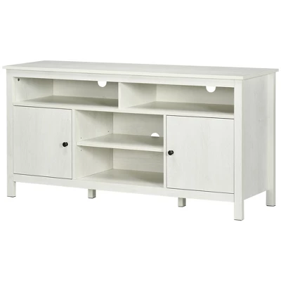 Upgrade your living room with this HOMCOM TV stand for a 65 inch TV. This storage unit does more than hold your big screen, it has four shelves and two cabinets to provide ample storage space for your favorite movies, a collection of video games, or books you love to read. Additionally, there are three cable holes for organizing wires without the mess. Make your house a home with HOMCOM.