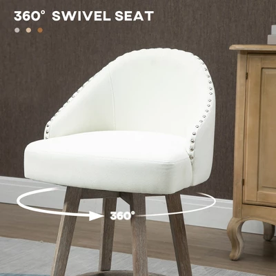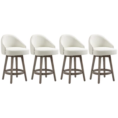 HOMCOM Bar Stools Set Of 4, Linen Fabric Kitchen Counter Stools With Nailhead Trim, Rubber Wood Legs And Footrest For Dining Room, Pub, Cream White