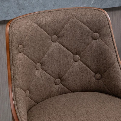 HOMCOM Counter Height Bar Stools Set Of 2, Height Adjustable Swivel Barstools With Footrest And Tufted Back, Linen Fabric Bar Chairs, Brown