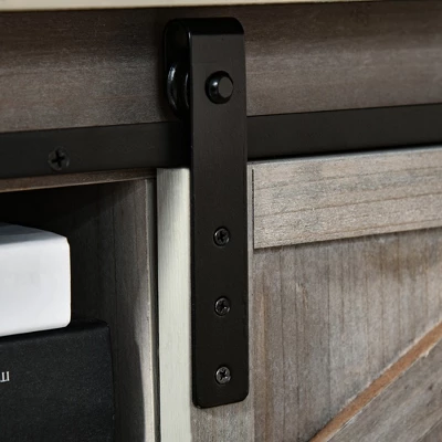 HOMCOM Farmhouse Style Console Table With Sliding Barn Doors And 4 Open Storage Compartments And Elevated Base, Gray