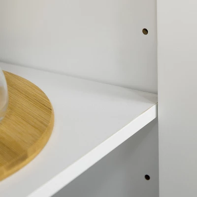 Quickly add storage and get your room clutter-free with this HOMCOM buffet cabinet with storage. The sleek modern style of glass doors and an elevated frame delivers a charming, elegant esthetic. At the same time, the sideboard provides ample storage space for your daily accessories and utensils. Customize your home space with adjustable shelves that move up or down to fit your needs.