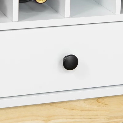 - Wine Storage Solution: Featuring a 12-bottle wine rack, this wine cabinet with storage offers a compact solution to a generously sized collection. A long countertop allows a spacious area to use as a drinking station, to leave out trays of food, to use a countertop for a microwave or blender, and to set things down as you would on a side table.