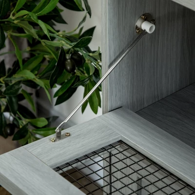 - Storage Solution: Our living room cabinet features a flip drawer with a metal grid design to store items and make them easily viewable. It also has a 2-tier doored cabinet to keep belongings hidden and dust-free, and a flat tabletop to display your decorations.