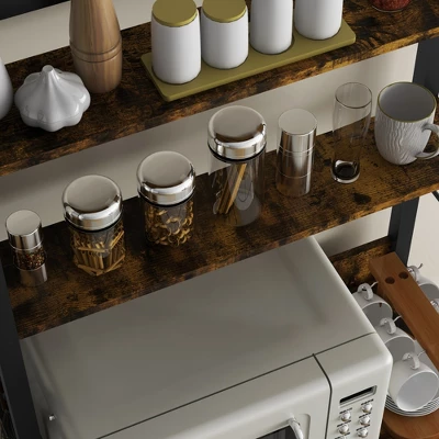 Discover your kitchen’s untapped potential with our kitchen storage rack. Stylish and versatile, it can transform any space into an organized culinary paradise. The open-back design ensures your favorite appliances are always ready for action. Master the art of hosting with the coffee bar setup. Boasting extra storage space, our industrial microwave stand helps declutter countertops, giving you room to unleash your inner chef. Make your house a home with HOMCOM.