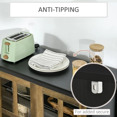 Quickly add that needed storage and get yourself clutter-free with this HOMCOM kitchen sideboard. The distinctive color-blocked effect makes the kitchen cupboard a good choice for something truly unique. At the same time, the storage cabinet provides ample space for your daily accessories and utensils. This HOMCOM buffet cabinet will create a classic feel and grace your house.
