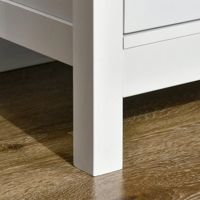 Quickly add that needed storage and get kitchen supplies clutter-free with this HOMCOM kitchen buffet cabinet. Framed tempered glass makes this sideboard buffet stylish and keeps the item without dust. The sideboard storage cabinet with two-door cabinets and a tabletop provides a versatile storage solution. Customize your home space with the interior adjustable shelf that moves to fit your needs. This HOMCOM buffet sideboard will create a classic feel and grace your house.
