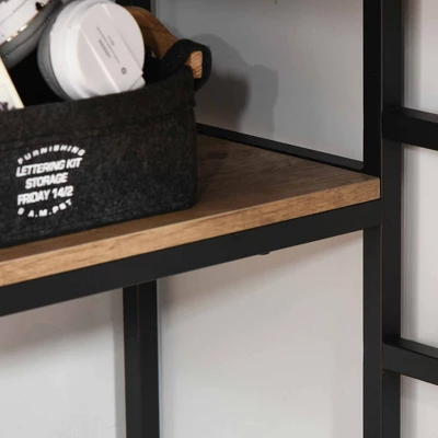 - INDUSTRIAL STYLE: The black steel frame and brown wood grain board of this desk with shelves to create a classic industrial style that will stand out in your home office.