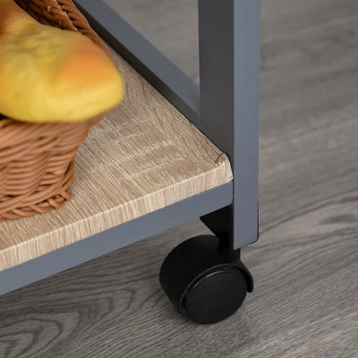 HOMCOM Mobile Rolling Kitchen Island Trolley Serving Cart With Underneath Drawer & Slide-Out Wire Storage Basket, Grey