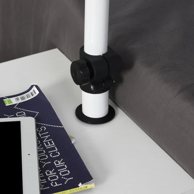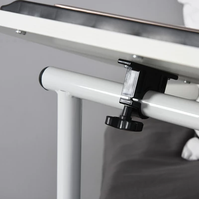 This moveable side table with a tilt/swivel laptop table from HOMCOM is compact and highly functional. You can use this cabinet table next to the couch as an end table and swing the arm over the armrest to use as a workspace for your laptop. With the edge stopper, your notepads, pens, headphones etc. can securely stay on top of the living room table. With the brilliant swivel caster wheels, the end table can be moved to anywhere you need it and also be used as a nightstand, drawing board, console table, storage cabinet etc.