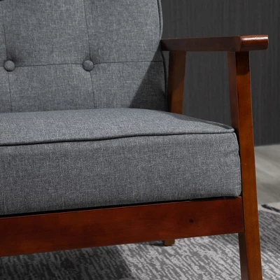 HOMCOM Modern Upholstered 2-Seat Loveseat Sofa With Linen-Touch Fabric And Rubberwood Legs, Gray