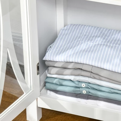 Quickly add that needed storage and get kitchen supplies clutter-free with this HOMCOM kitchen buffet cabinet. Framed tempered glass makes this sideboard buffet stylish and keeps the item without dust. The sideboard with two storage cabinets and a tabletop provides a versatile storage solution. Customize your home space with the interior adjustable shelves that move to fit your needs. This HOMCOM buffet sideboard will create a classic feel and grace your house.