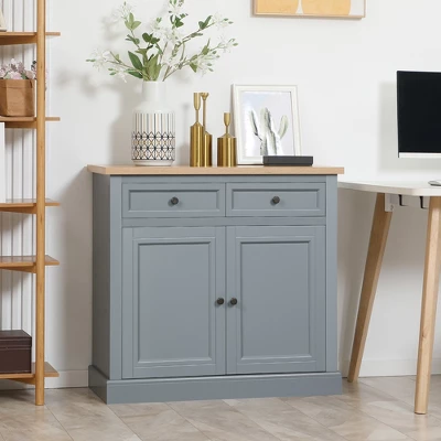 HOMCOM Sideboard Buffet Cabinet With Storage Drawers, 2 Door Kitchen Storage Cabinet With Adjustable Shelves, Coffee Bar For Living Room, Dark Gray