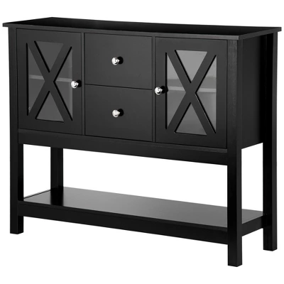 Quickly add that needed storage and get yourself clutter-free with this HOMCOM storage sideboard. The x-shaped front doors make a bold statement. At the same time, the buffet cabinet with two drawers and two cabinets provides a versatile storage solution. Customize your home space with the interior adjustable shelf that moves to fit your needs.