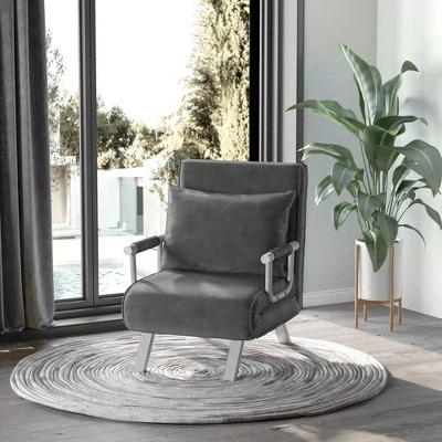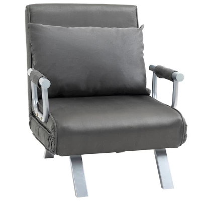 HOMCOM Single Person Folding 5 Position Convertible Sofa Bed Sleeper Chair Chaise Lounge Couch W/Pillow & Steel Frame