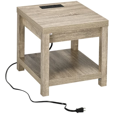 HOMCOM Storage End Table With Charging Station, Small Side Table For Small Spaces, Wood End Table With USB Ports And Outlets, Living Room Furniture