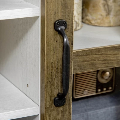- Farmhouse Style: Rustic framed doors paired with the black metal hardware endows the TV table a charming farmhouse look. Wondering how many inches of TV it can hold? Up to 55 inches