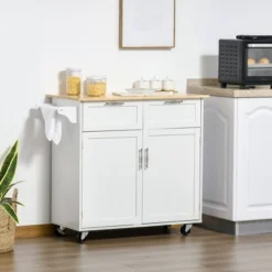 HOMCOM Kitchen Island Cart Rolling Trolley Cart With Drawer, Storage Cabinet & Towel Rack