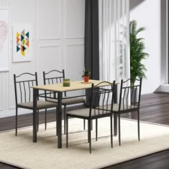 HOMCOM 5 Piece Modern Industrial Dining Table And Chairs Set For Small Space, Kitchen, Dining Room